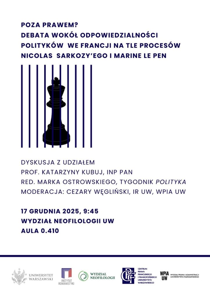 Centrum Polsko-Francuskiej Myśli Prawniczej zaprasza na debatę o odpowiedzialności polityków na tle procesów Nicolasa Sarkozy’ego i Marine Le Pen we Francji