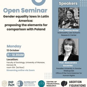 w imieniu Poznańskiego Centrum Praw Człowieka INP PAN oraz ERC Abortion Figurations Project (WS UW) zapraszam do wzięcia udziału w seminarium “Gender Equality laws in Latin America: proposing the elements for comparision with Poland”.