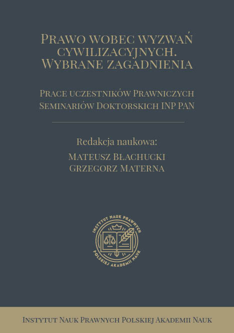 W roku 2024 wydana została monografia pod tytułem ”Prawo wobec wyzwań cywilizacyjnych. Wybrane zagadnienia. Prace uczestników Prawniczych Seminariów Doktorskich INP PAN„ (red. M. Błachucki, G. Materna). Monografia zawiera szesnaście opracowań dotyczących różnych zagadnień z zakresu prawa publicznego oraz prawa prywatnego. Ich zróżnicowana tematyka odzwierciedla różnorodne zainteresowania naukowe autorów powiązane zakresem tematu badawczego realizowanego przez INP PAN w latach 2021–2025: „Prawo wobec wyzwań cywilizacyjnych”. Książka dostępna pod adresem w linku.